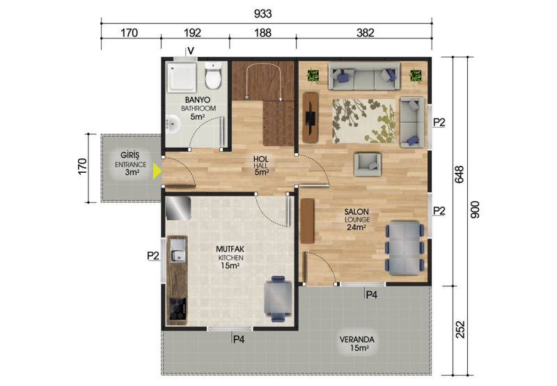 Son derece kullanışlı olan bu model prefabrik ev fiyatları üzerinde değişiklik yapabilmek ya da tamamen farklı bir model oluşturabilmek mümkündür ve bu durum prefabrik evlerin avantajlarından sadece biridir.