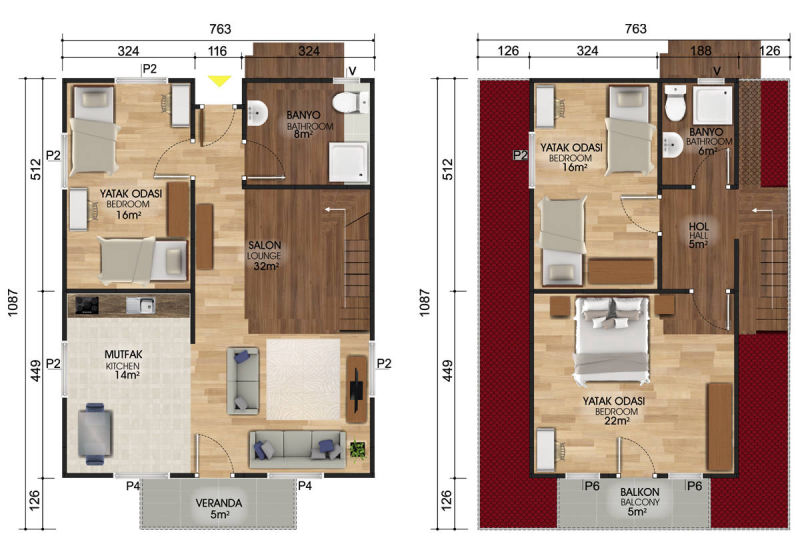 Dış Cephe : Düz Betopan (Standart), Ahşap Desen Betopan (Opsiyonel), Kaya Desen Betopan (Opsiyonel), Çizgili Desen Betopan (Opsiyonel)